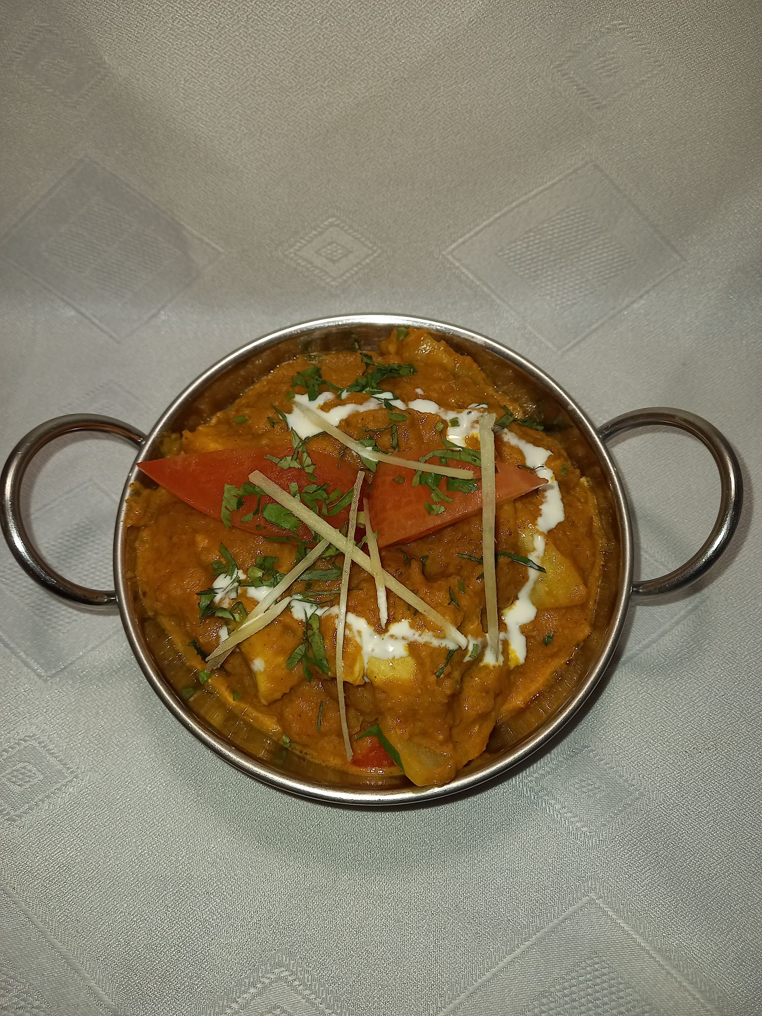 kurczak gotowany w indyjskich przyprawach oraz mleczku kokosowym w aromatycznym sosie pomidorowym -